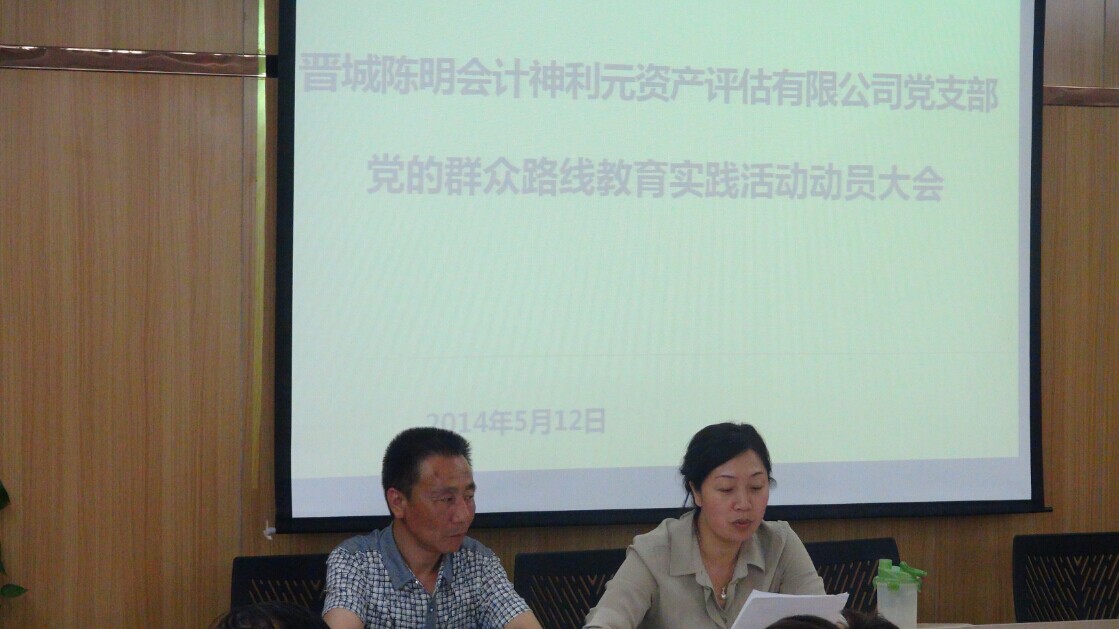 根據(jù)注冊(cè)會(huì)計(jì)師注冊(cè)評(píng)估師行業(yè)活動(dòng)領(lǐng)導(dǎo)小組《關(guān)于印發(fā)<山西省注冊(cè)會(huì)計(jì)師注冊(cè)評(píng)估師行業(yè)黨的群眾路線教育活動(dòng)實(shí)施方案>的通知》(晉注會(huì)評(píng)黨(2014)7號(hào))文件的總體部署和要求,我公司于2014年5月12日,成功召開(kāi)黨的群眾路線教育實(shí)踐動(dòng)員大會(huì)。